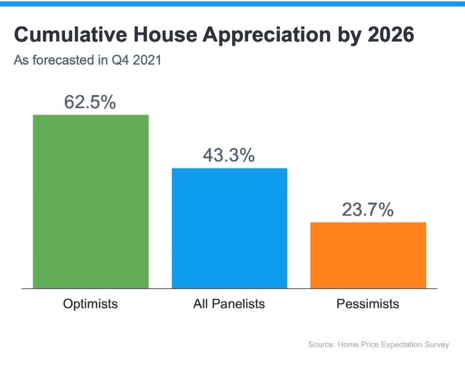 Even the most pessimistic economists believe that we will see a 23.7% increase in cumulative house appreciation by 2026 while estimates averaging all panelists’ opinions is at 43.3%.