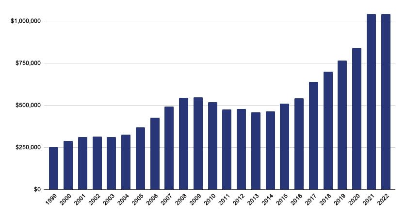 In 2020, the value of that property jumped to $840,617 and after our incredible year in 2022, the value of your home would be $1,040,012.