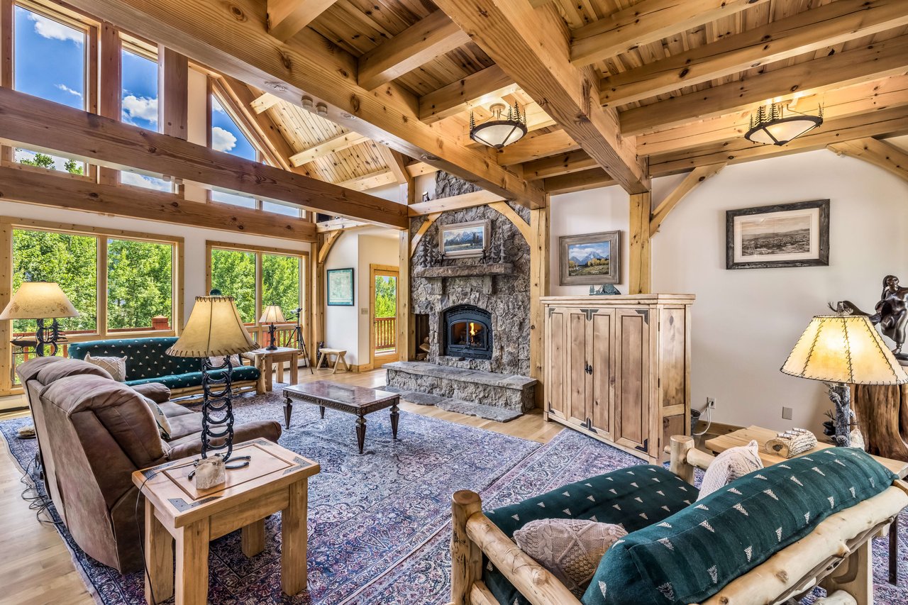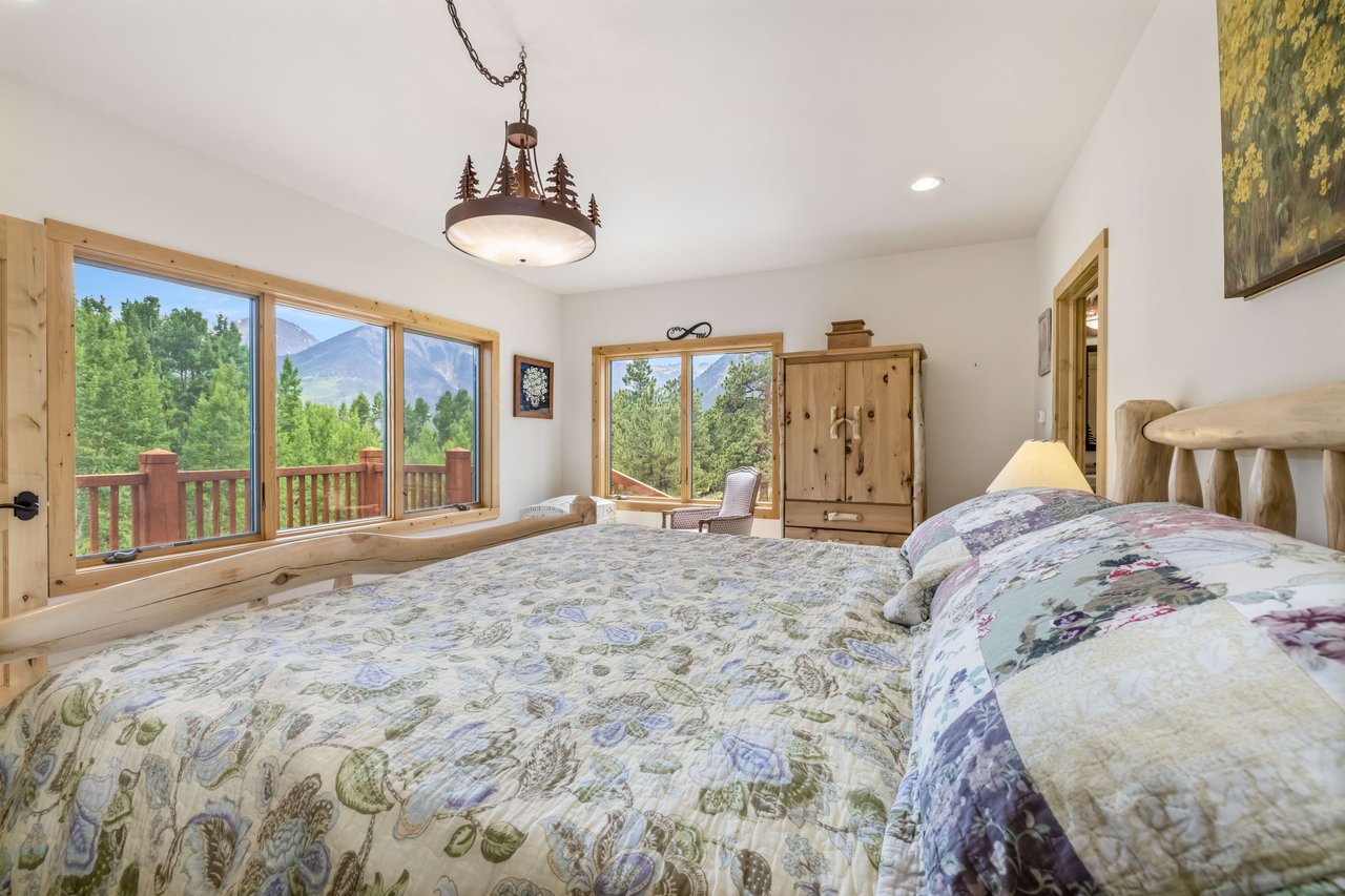 Surround yourself with nature among some of the biggest mountains in Colorado. This 4 bedroom, 5 bathroom post-and-beam home sits on the edge of town en-route to the base of Mount Elbert. Its wall of floor-to-ceiling windows embrace the surrounding forest, and offer endless lake and mountain views. The rustic wood finishes, along with the bold, stone fireplace provide the luxury cabin experience many seek. Spacious living areas abound on 2 of the 3 levels, with room enough to entertain large groups of family and friends. Enjoy views of the lakes or the Collegiate Mountain Range from the expansive south-facing deck. The lower level further benefits from a workshop, craft room, and heated basement storage rooms. An oversized 2 car detached garage has plenty of additional storage space, and also houses the owned solar system. Located conveniently off Hwy 24 between Leadville and Buena Vista, this is a home you won't want to miss.