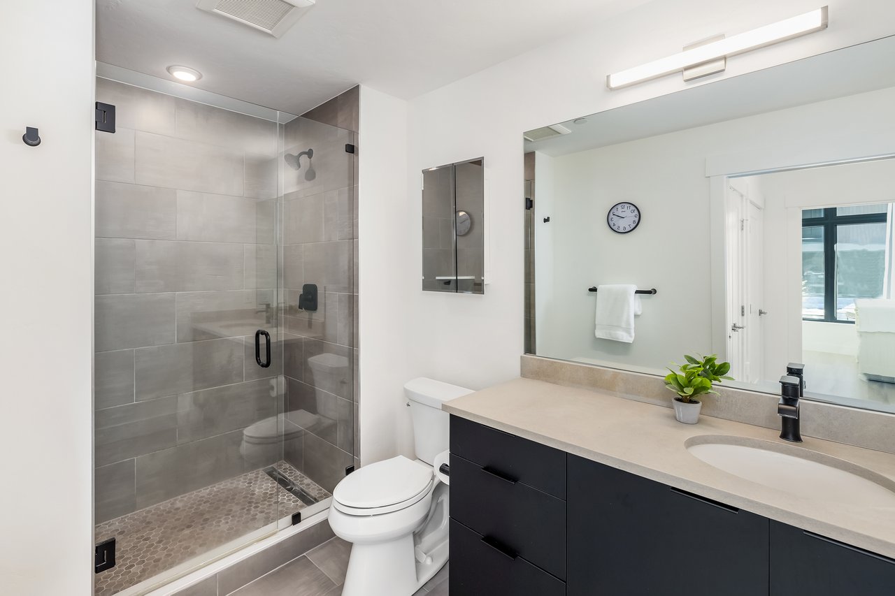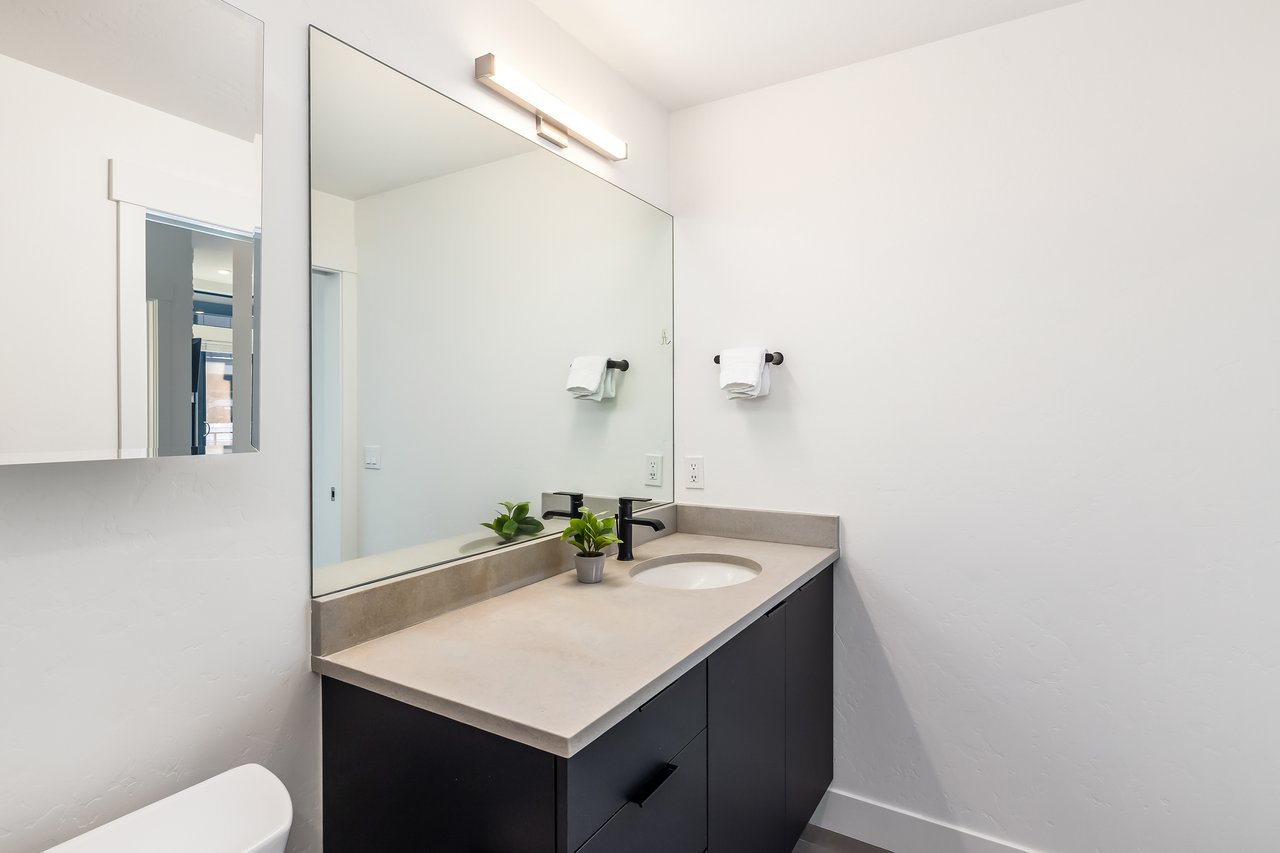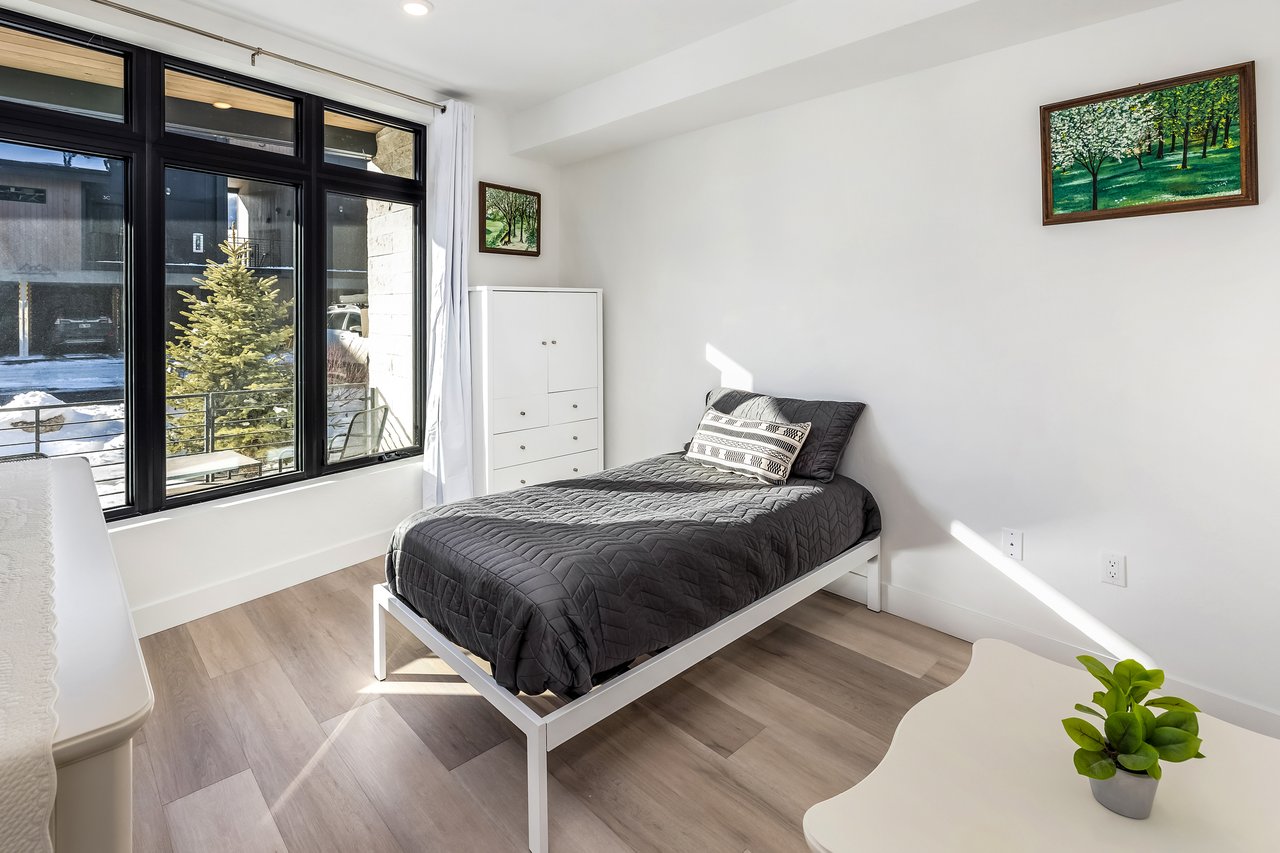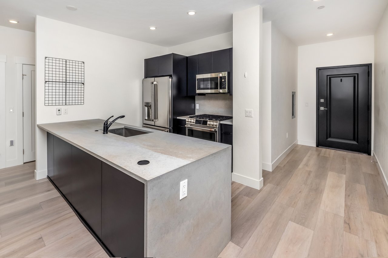 Welcome to the Rockies and your new Summit County basecamp for all your mountain adventures! Built in 2020, enjoy the modern build and finishes throughout this River West Condos. Bright wood floors and white tile contrast perfectly with the dark wood finishes of the cabinets, trim and doors. The waterfall leathered quartz countertops act a show piece in the open concept living and kitchen area. The floor to ceiling stone fireplace add to the modern style finishes, providing a warm and comfortable living area after a long day on the ski hill. Enjoy the spacious bedroom and sizable bathroom, both with matching finishes. Located within the up-and-coming town of Silverthorne, boasting growing downtown and arts culture, this property's easy access to the bike path connects it to all the town events and county ski resorts. From modern finishes to a prime location, make this River West Condo your next home in the Rocky Mountains!